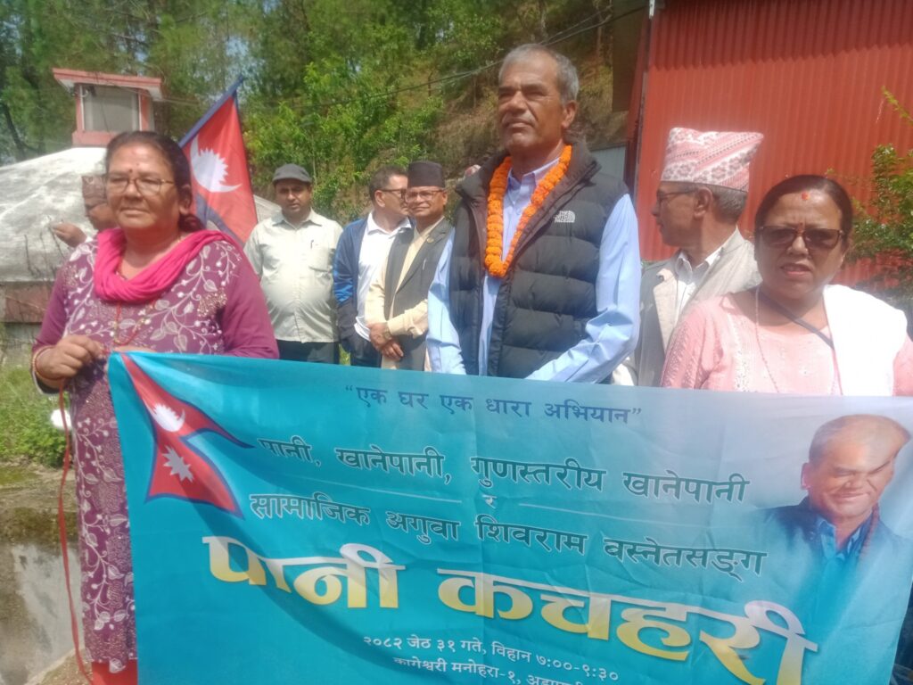 यसअघी पानी कचहरीका परिकल्पनाकार फुँयालले २०५१ सालमा तत्कालीन सरकारले आलापोटलाई नमुना गाबिस घोषणा गरेपछी गाबिस अध्यक्षको हैसियतमा एक घर एक धारा अभियान आरम्भ गरेको स्मरण गर्नुभयो । यो अभियानलाई २०७४मा बागमती प्रदेशले र हाल सँघिय सरकारले देशैभर सन्चालनमा ल्याएको पनि उहाँले जानकारी गराउनू भयो ।