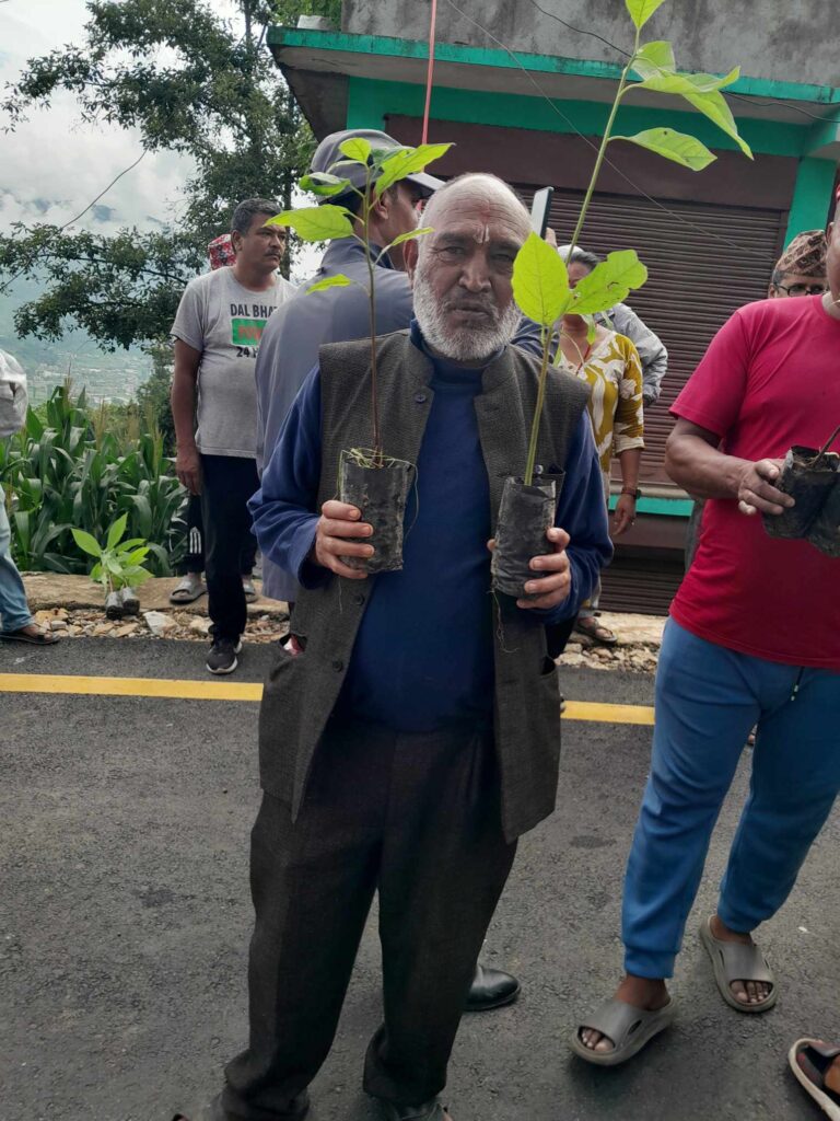 रोपिएका बिरुवालाई आफ्ना सन्तानलाइ जस्तै हुर्काउन आग्रह गर्दै अभियन्ता दिनेश खनालले तिन बर्षपछी फलदिन थालेपछी प्रतिबोट ३० देखी ४०हजार बार्षिक आम्दानी हुने पनि जानकारी गराउनू भयो ।