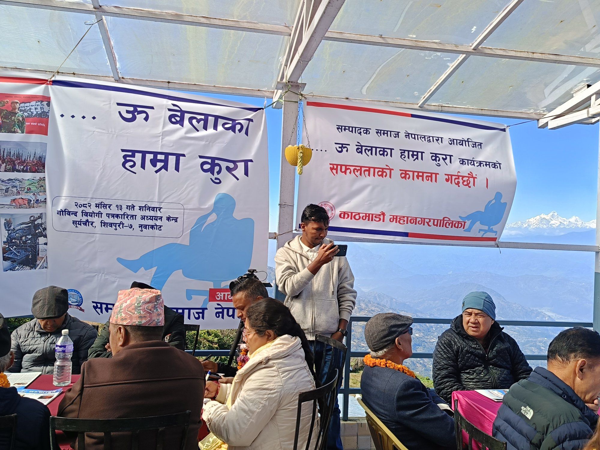 गोबिन्द बियोगी पत्रकारिता अध्यन केन्द्र शिबपुरी गाउँ पालिका ७ सुइरेचौर नुवाकोटमा भएको उक्त कार्यक्रममा करिब ८० जना पत्रकारहरुको उपस्थिती थियो ।
