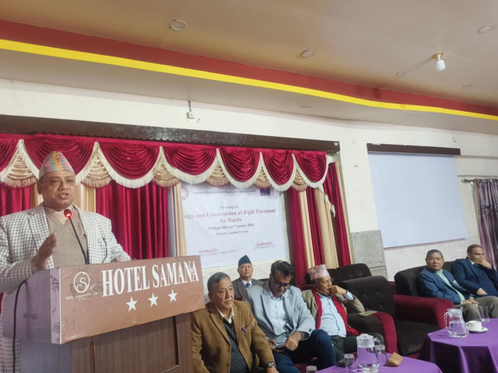 हेटौंडा, ७ माघ । सडक पूर्वाधारको दिगो विकासलाई लक्षित गर्दै सडकका लागि कठोर पक्कीकरणको डिजाइन तथा निर्माण सम्बन्धी एकदिने तालिम कार्यक्रम हिजो हेटौंडामा सम्पन्न भएको छ। मंगलबार नेपाल सिमेन्ट उत्पादक संघको आयोजनामा तथा आइपिटिएम नेपाल प्रा.लि. को सहजीकरणमा कार्यक्रम सम्पन्न भएको हो।बागमती प्रदेशका मुख्यमन्त्री इन्द्रबहादुर बानियाँको प्रमुख आतिथ्यता तथा नेपाल सिमेन्ट उत्पादक संघका अध्यक्ष रघुनन्द मारुको सभापतित्वमा तालिम कार्यक्रम सँम्पन्न भएको हो ।