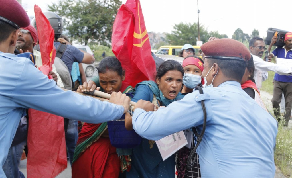 काठमाडाैं । मिटरब्याज पीडितहरुमाथि प्रहरीले कीर्तिपुरमा बल प्रयोग गरेको छ । सोमबार कीर्तिपुर गेटनजिकै विभिन्न नारासहितका प्लेकार्ड बोकेर प्रदर्शनमा उत्रेका उनीहरुमाथि प्रहरीले लाठी प्रहार गरेकाे हाे ।प्रहरीको कुटाईबाट ४–५ किसान तथा युवाहरु