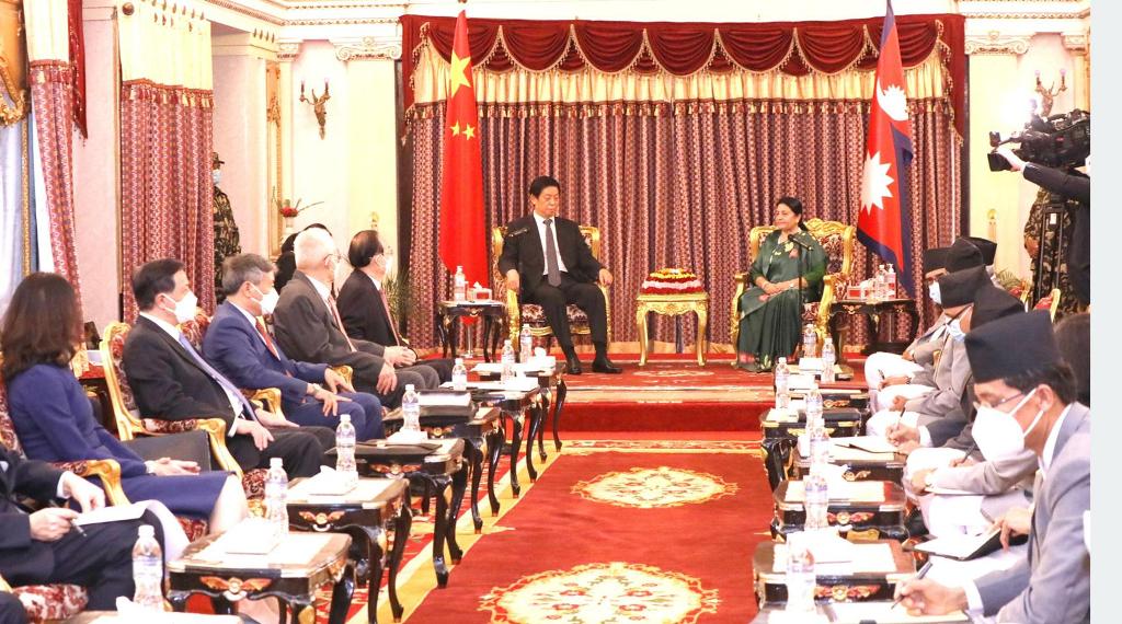 काठमाडाैं । राष्ट्रपति विद्यादेवी भण्डारीसँग जनवादी गणतन्त्र चीनको राष्ट्रिय जनकंग्रेस, स्थायी समितिका अध्यक्ष ली चान्शुले शिष्टाचार भेटवार्ता गरेका छन् । राष्ट्रपतिको कार्यालयमा बुधबार अपराह्न भएको प्रतिनिधिमण्डलस्तरीय भेटवार्तामा उनीहरुबीच द्विपक्षीय आपसी हितका